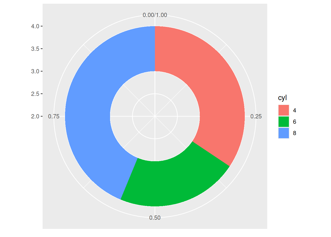 p <- ggplot(counts1, aes(ymax=ymax, ymin=ymin, xmax=4, xmin=3, fill=cyl)) +