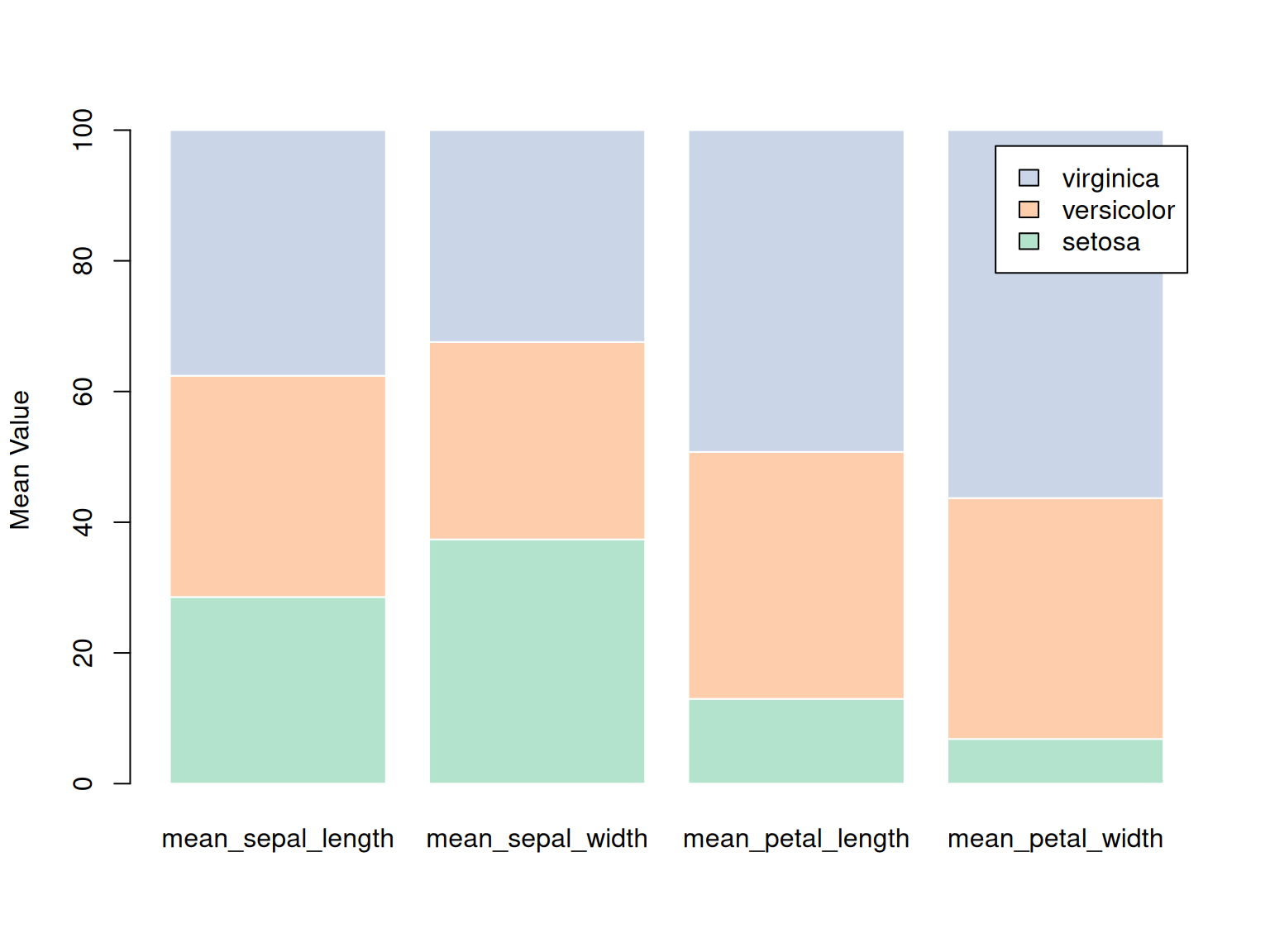 iris_percentage <- apply(iris_matrix, 2, function(x) { x * 100 / sum(x, na.rm = TRUE) })