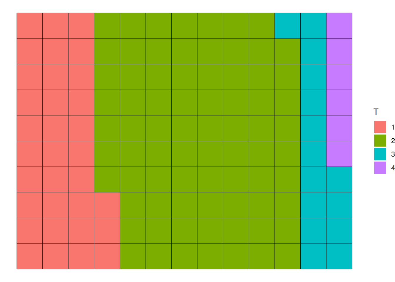 ggplot(counts, aes(fill=T, values=Freq)) +