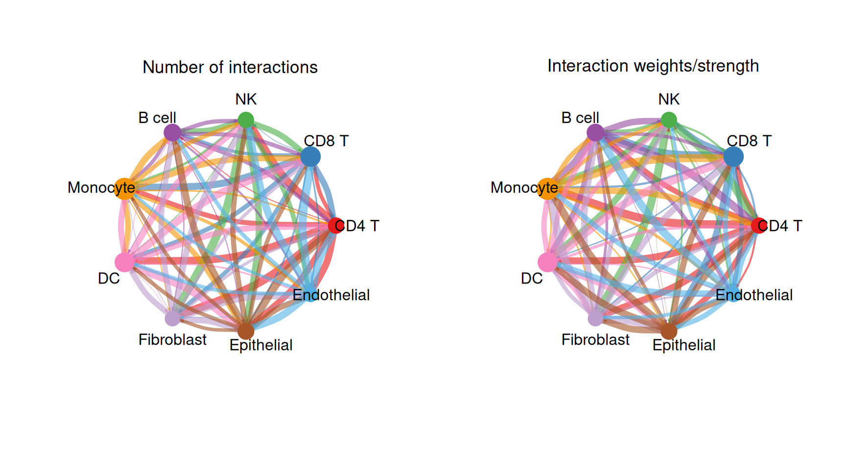 # Now cellchat@net$count and cellchat@net$weight are available for plottingVisualization