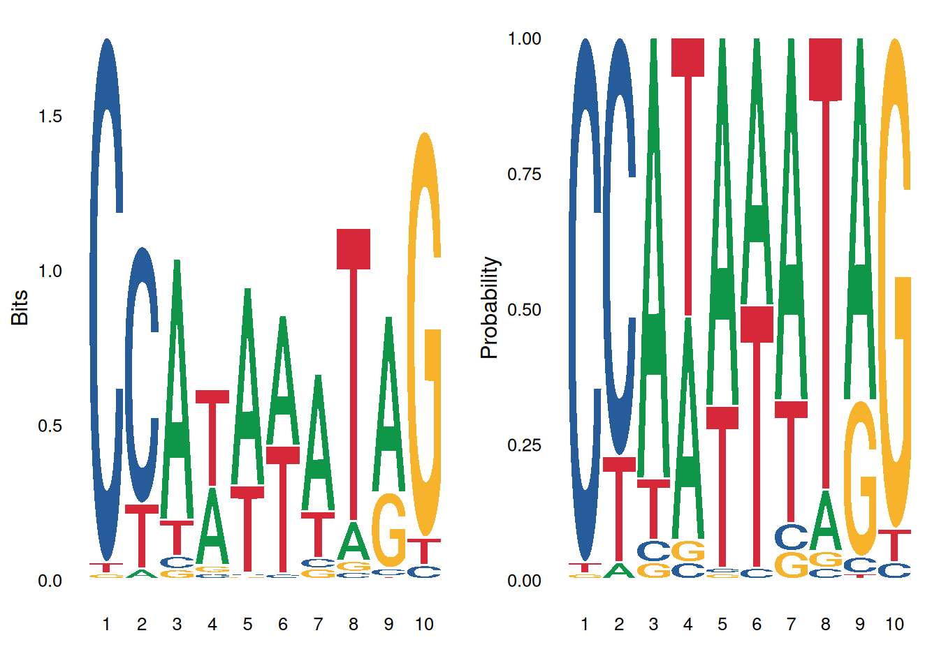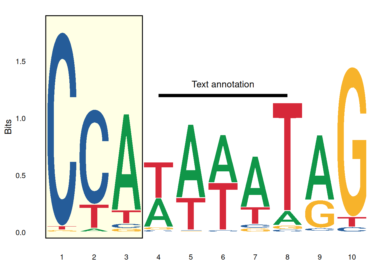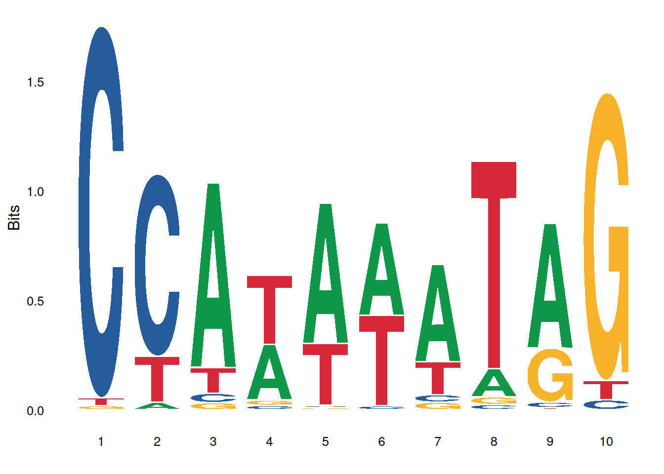 labs(x='Position', y='Bits', title='Transcription Factor Binding Motif')