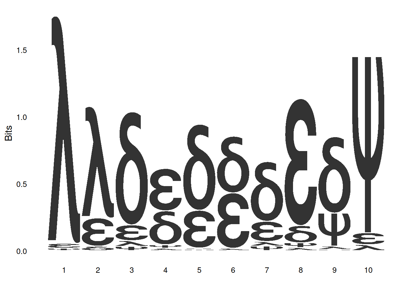 ggseqlogo(seqs_greek, namespace='δΡΟΞ»', method='bits')