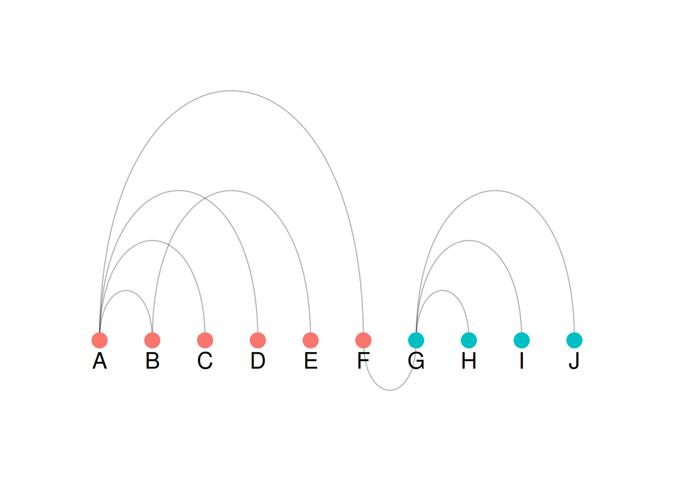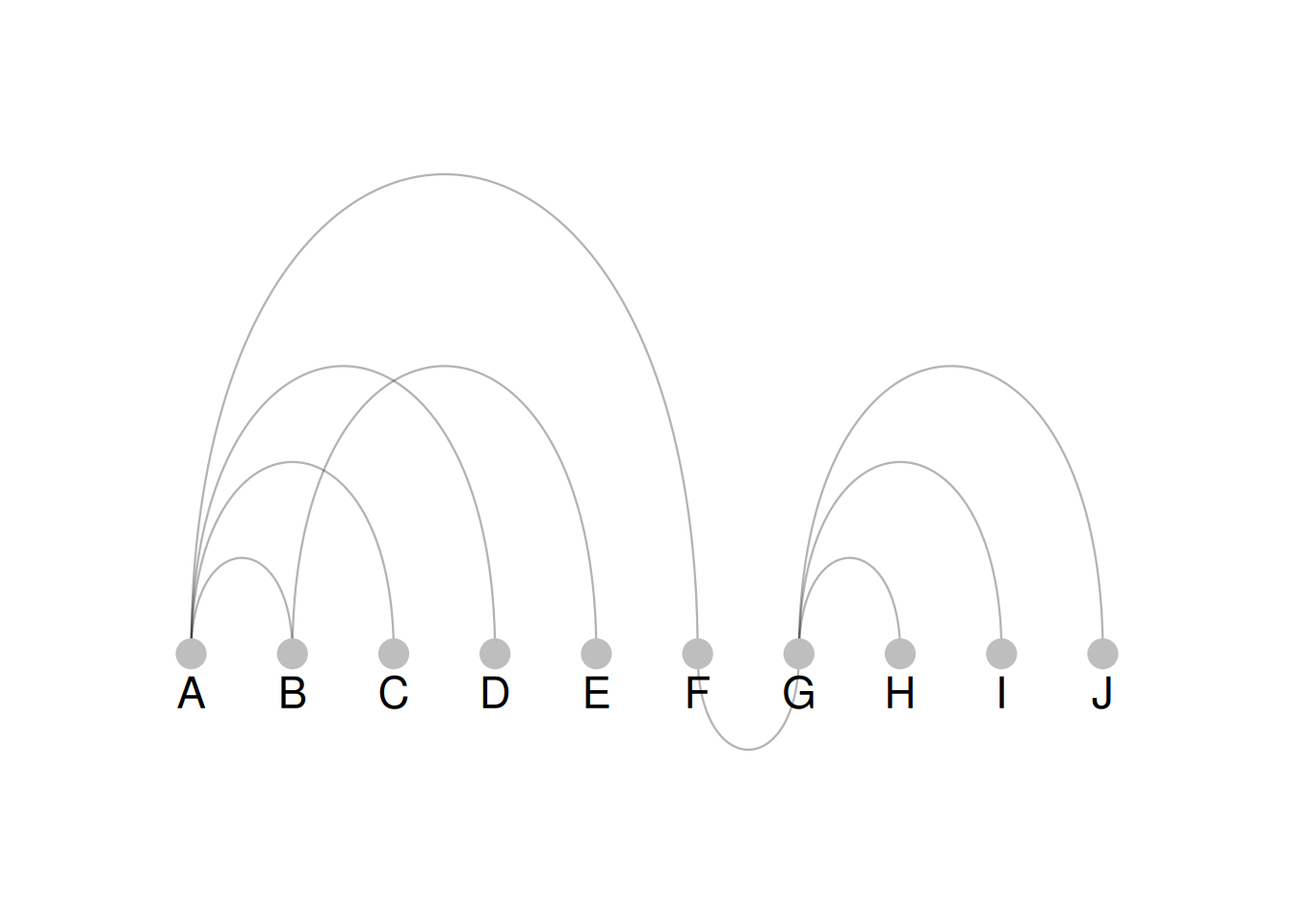 The figure shows a simple arc diagram. The nodes are neatly arranged at the bottom of the diagram and connected by arcs, forming the main body of the arc diagram.