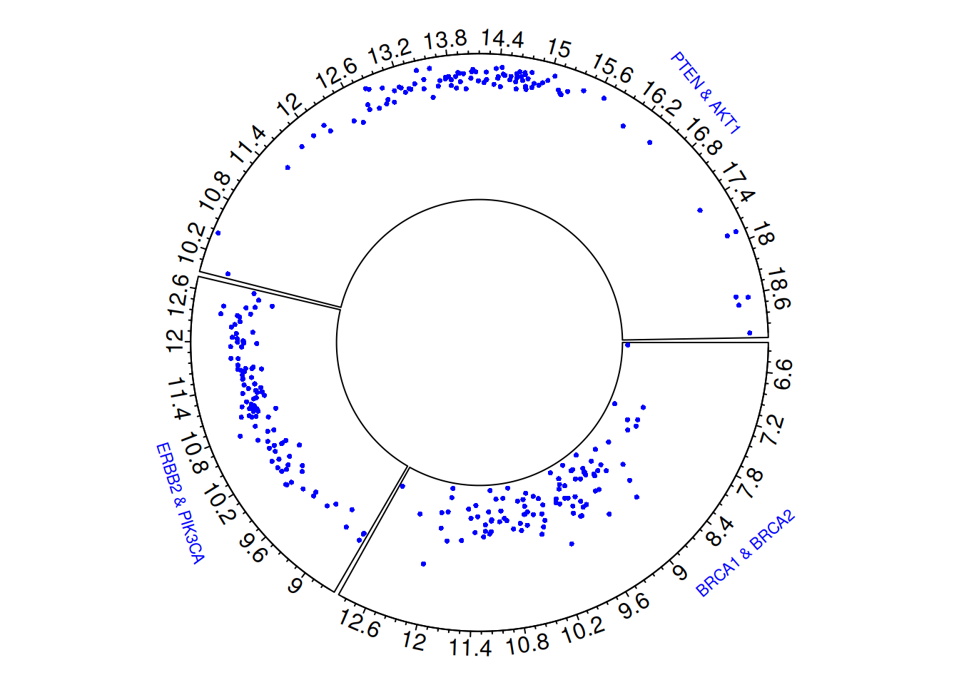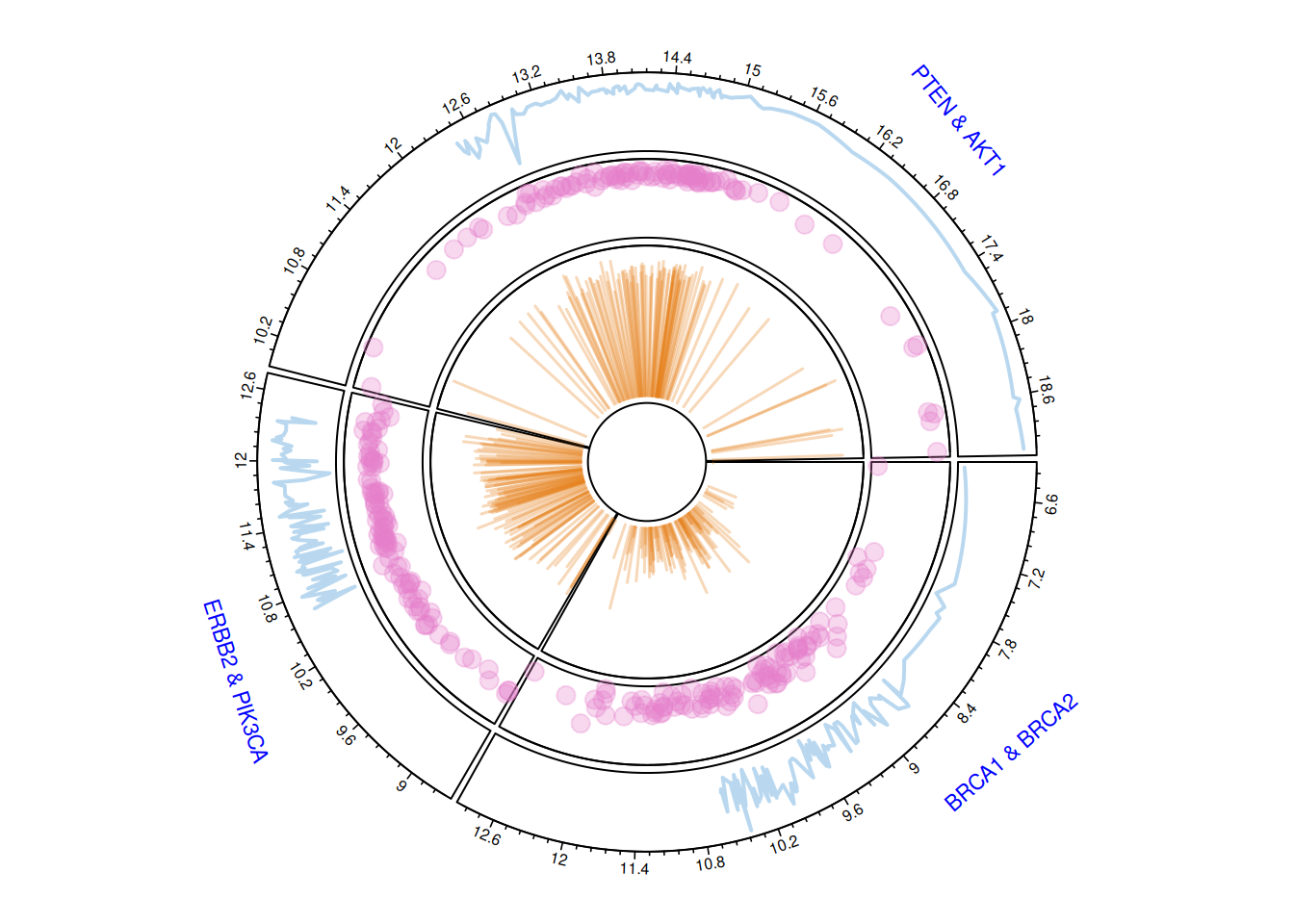 circos.text(x = 9, y = 20, labels = "BRCA1 & BRCA2",