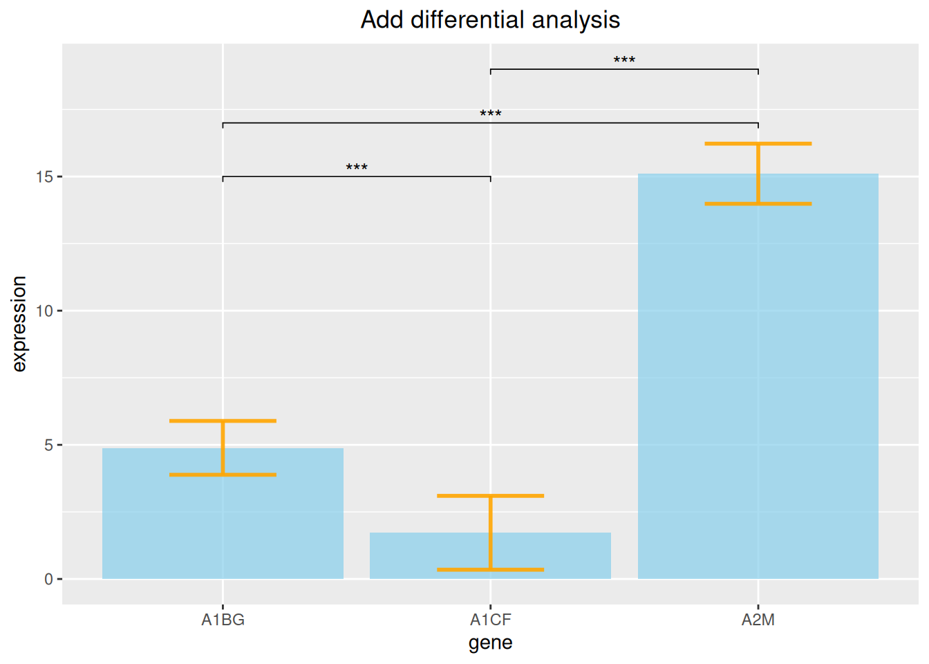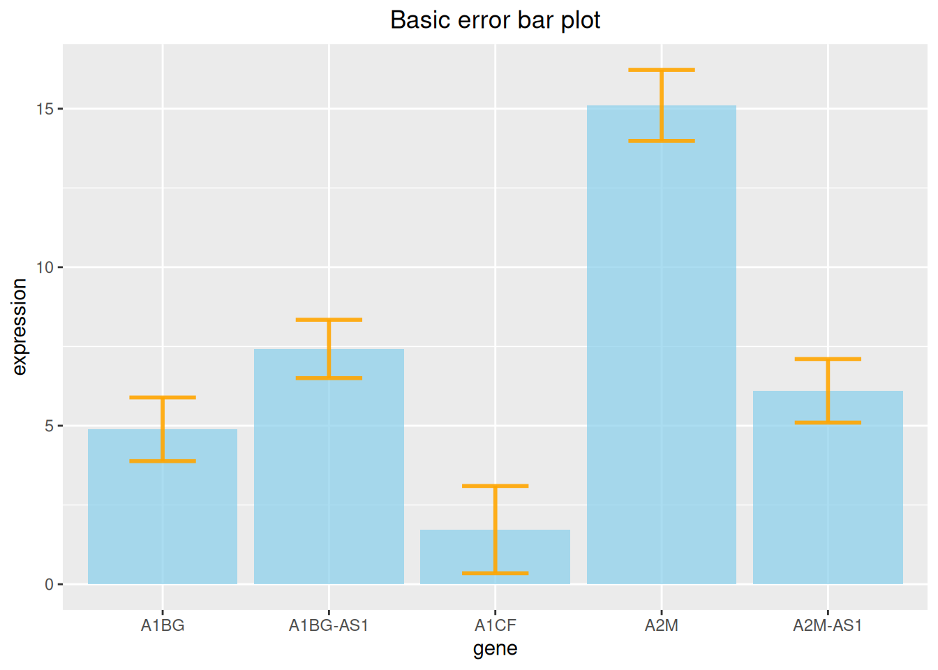 geom_errorbar( aes(x=gene, ymin=expression-sd, ymax=expression+sd),