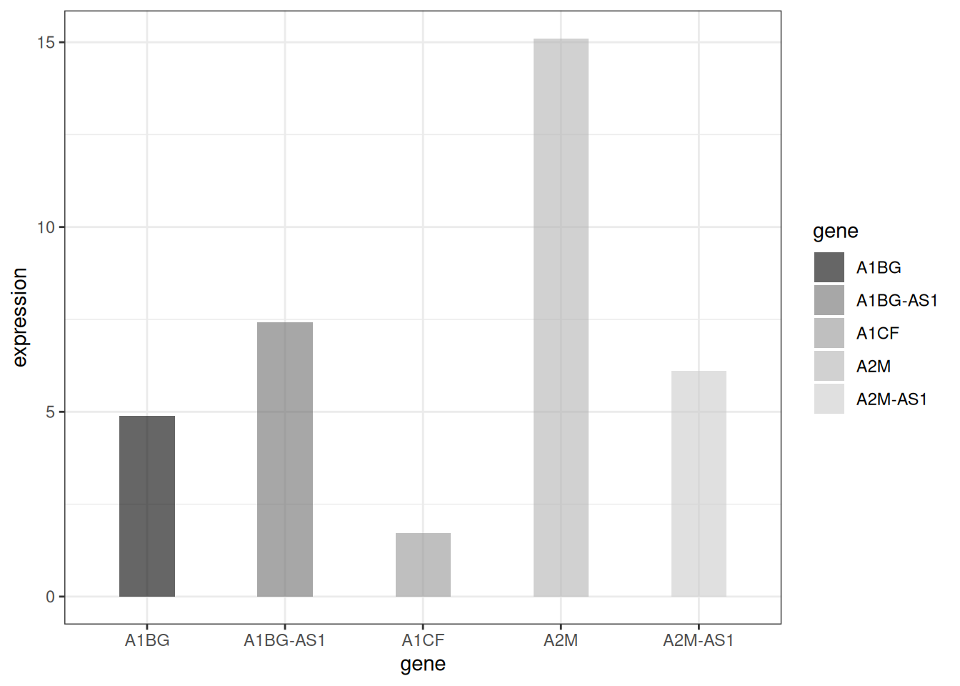 gene == "A1BG" | gene == "A1CF" | gene == "A2M")