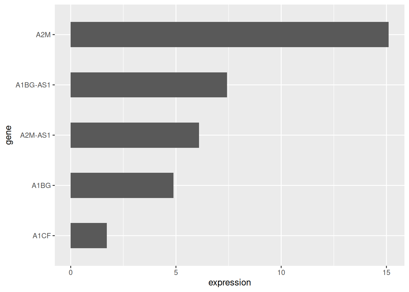mutate(gene=fct_reorder(gene,expression)) %>% # fct_reorder order