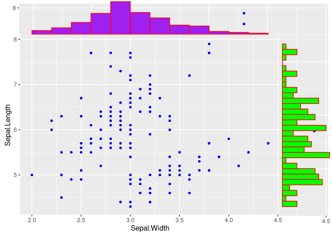 p <- ggplot(data, aes(x = Sepal.Width, y = Sepal.Length)) +