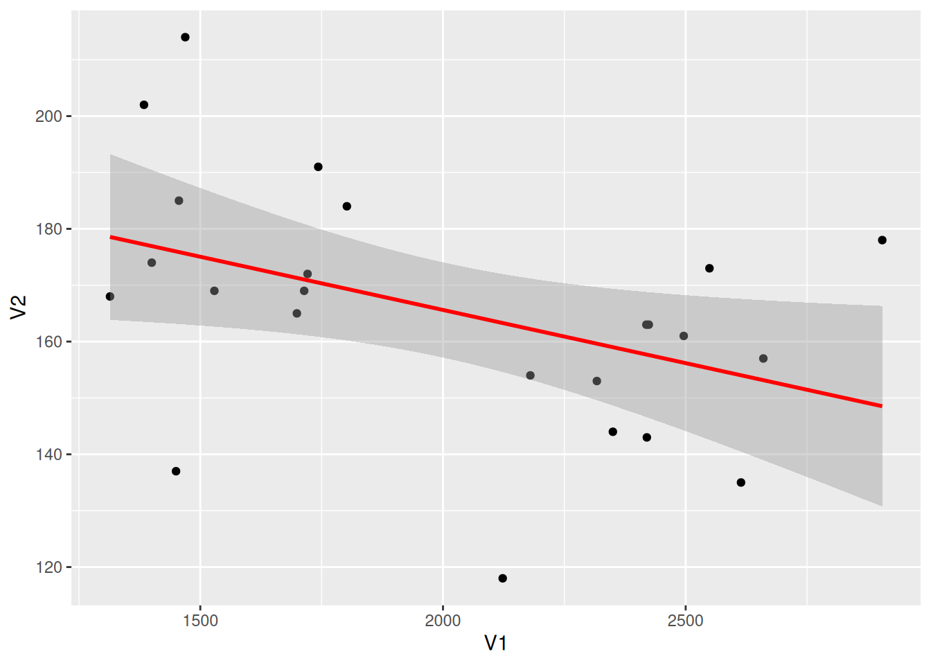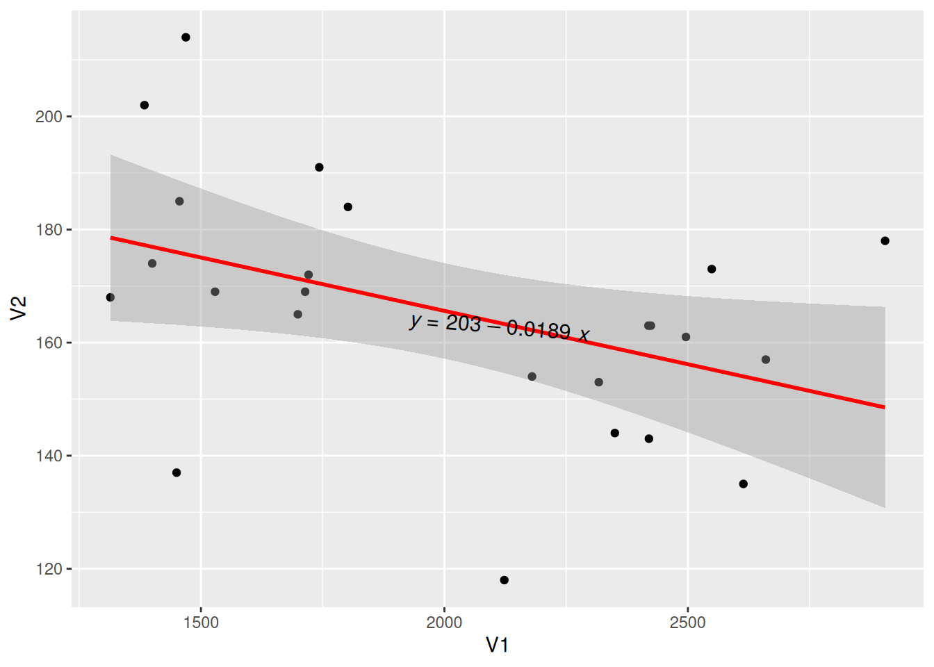 geom_smooth(method = "lm", formula = y ~ x, se = T, color = "red") +