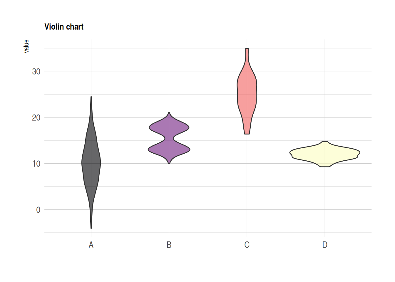 小提琴图结合了和箱线图和密度分布图,也能体现组内观察到具体分布。