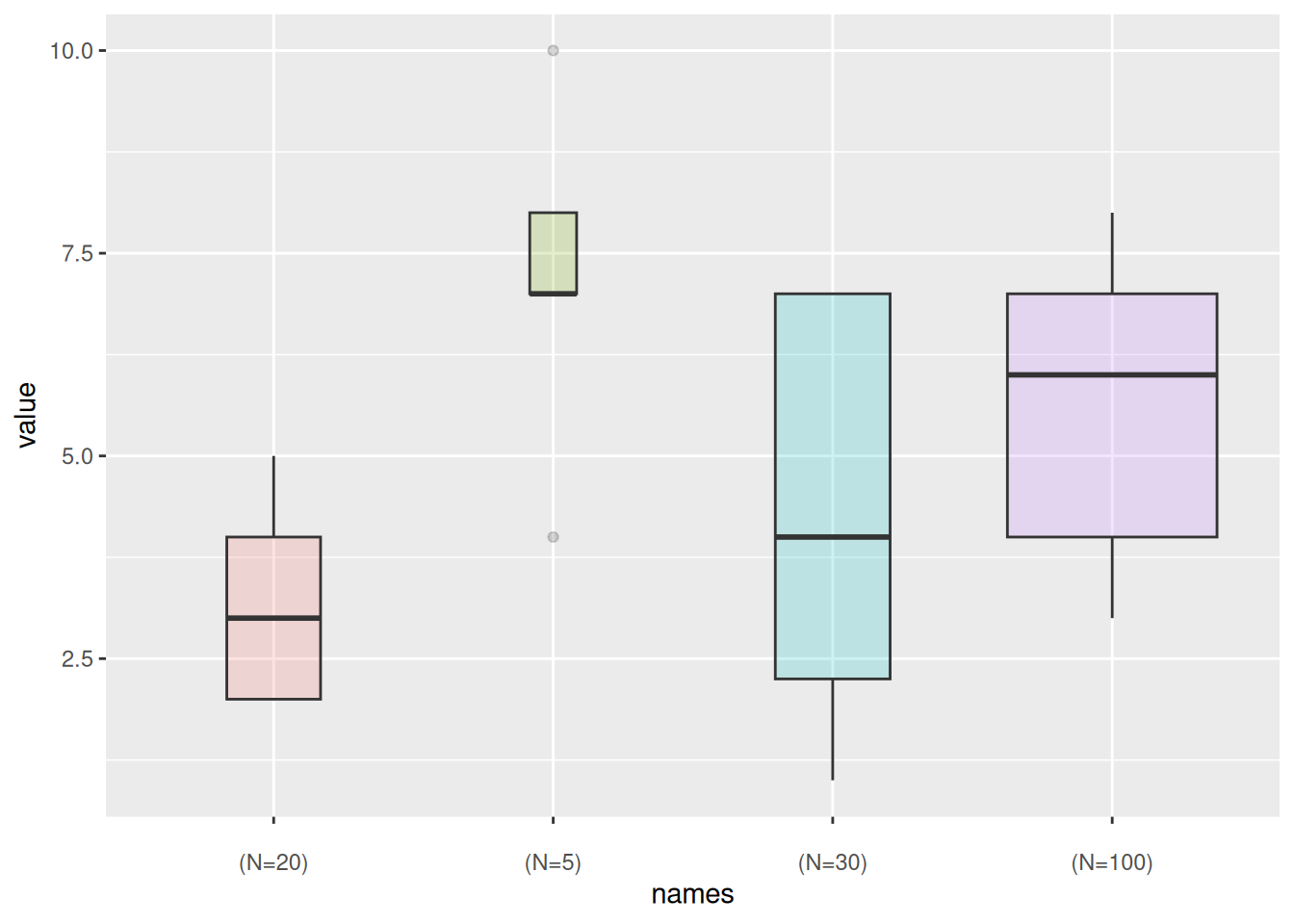 geom_boxplot(fill="slateblue", alpha=0.2) + # 颜色填充及字体大小