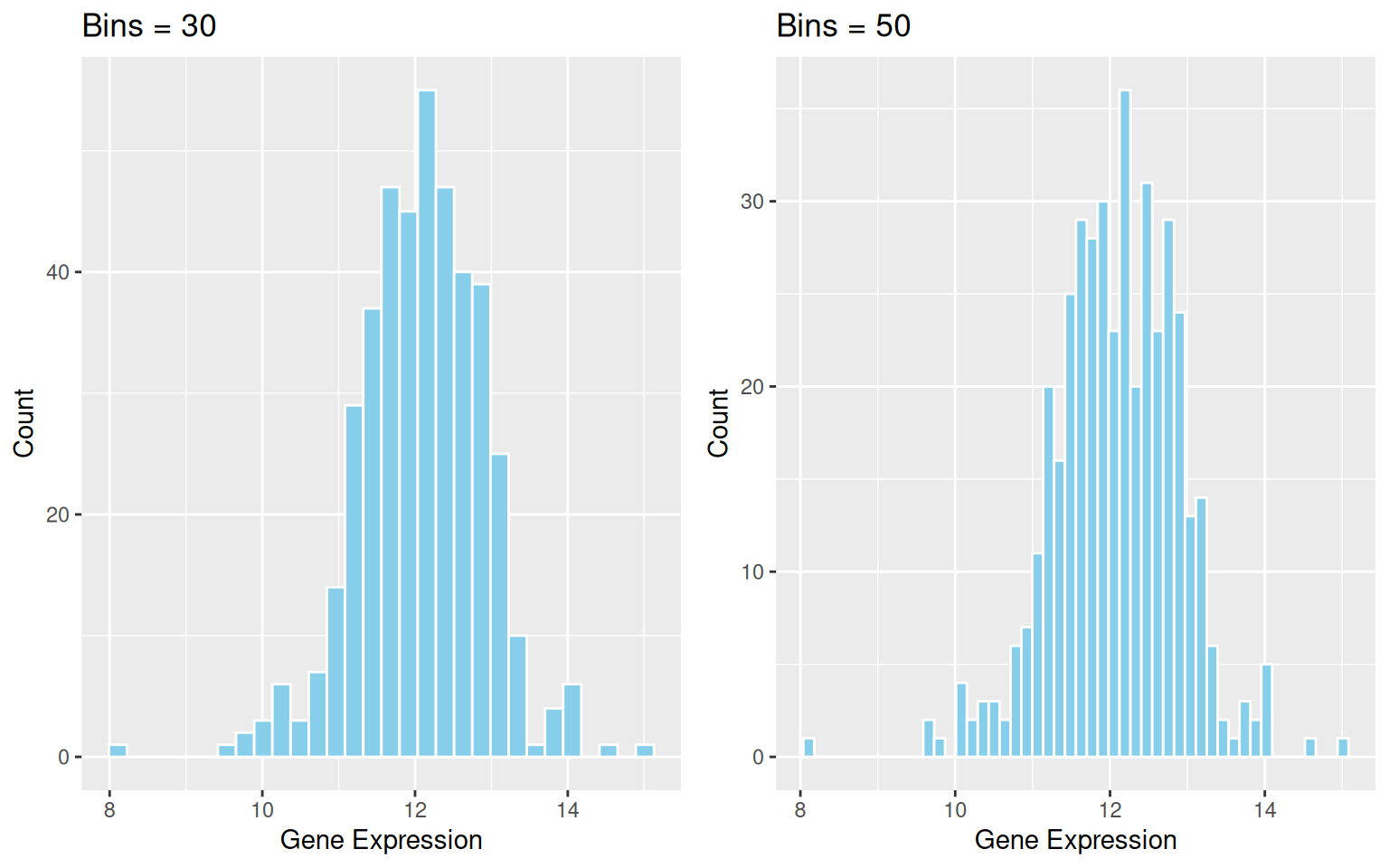 binwidth/bins参数决定每一个箱体包含数据的多少,改变binwidth/bins会对图形造成很大的影响,也会影响到想要表达的信息。