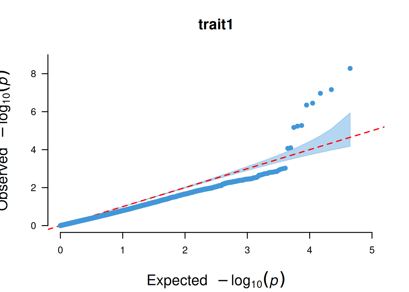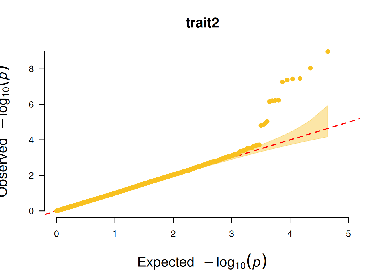 SNP基于的QQ图核心作用是检验 GWAS 分析中 SNP 的 P 值分布是否符合 “无关联假设下的期望分布”,以此判断分析结果的可靠性。