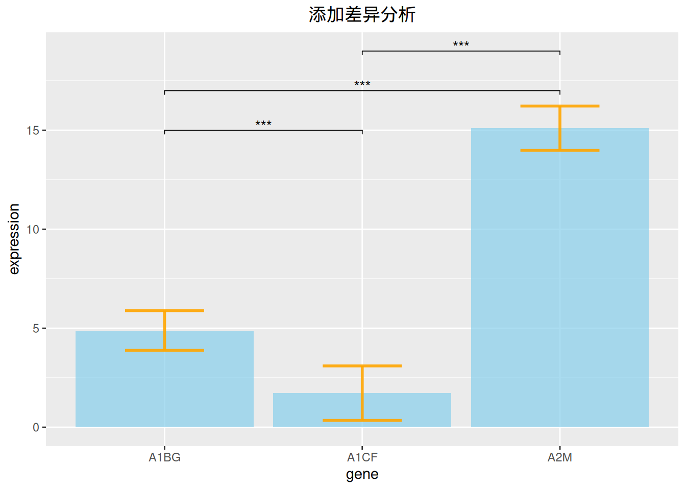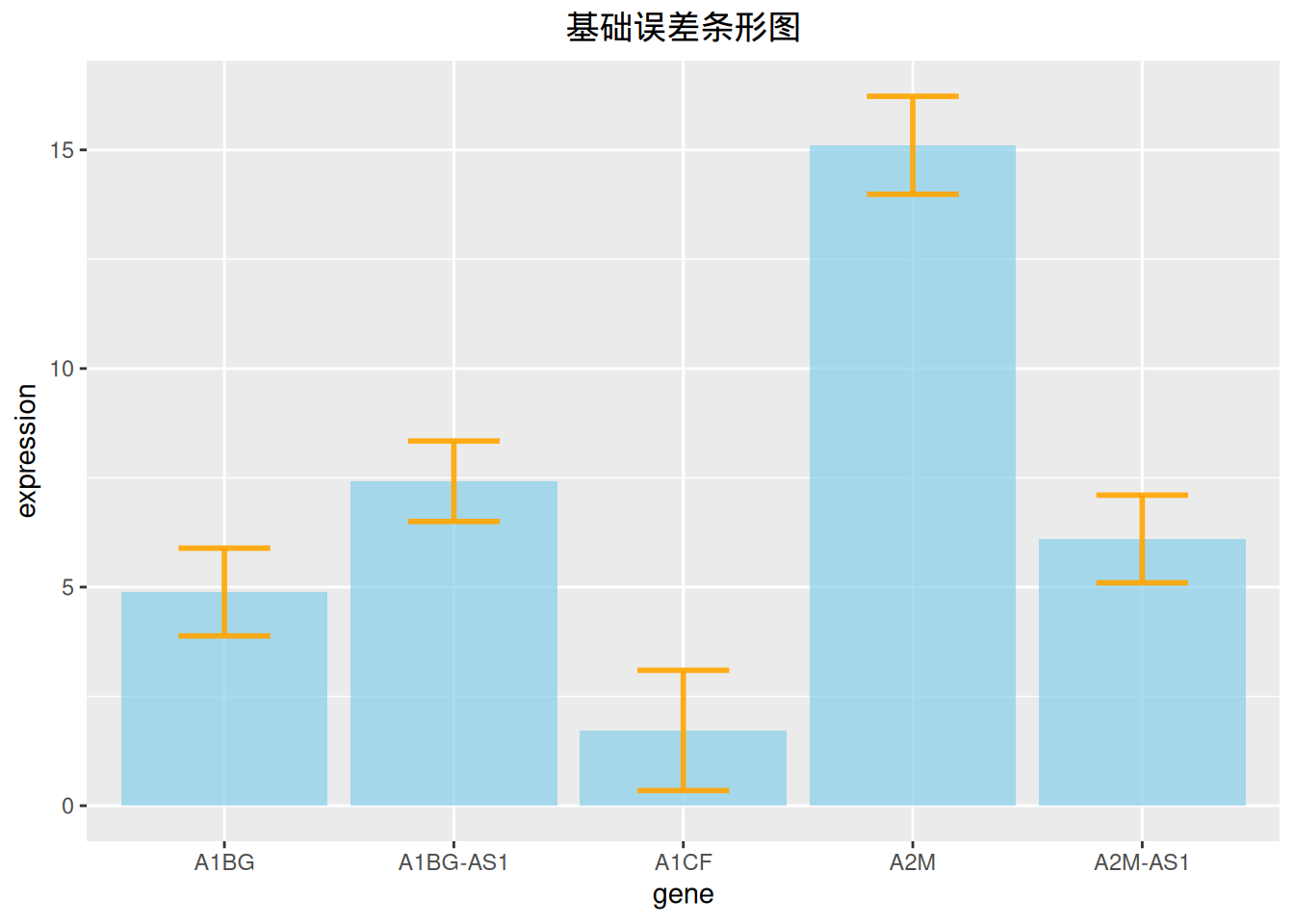 上图在展示各基因表达量的同时添加了标准差误差线。