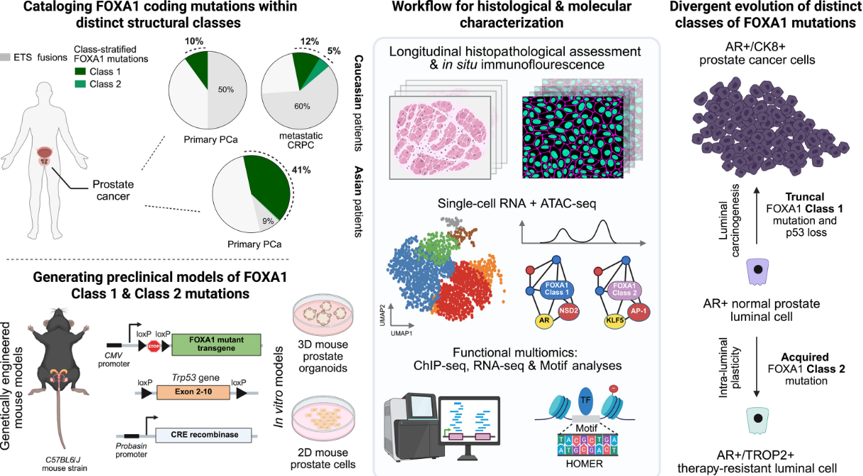 该研究首次系统性地揭示了FOXA1基因的两类功能性突变如何分别驱动前列腺癌的两种“恶性进化路径”,为前列腺癌的异质性提供了机制解释,并为基于突变分类的个体化治疗奠定基础。